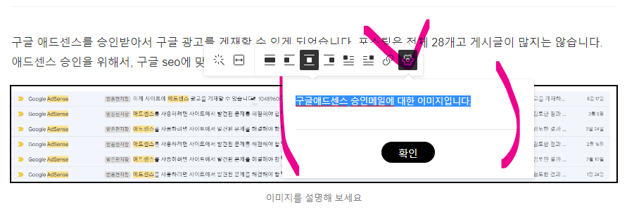 - 알트태그를 넣는 방법은 사진 첨부 - 클릭 - 톱니바퀴 - 대체 텍스트 삽입으로 진행하면 됩니다.