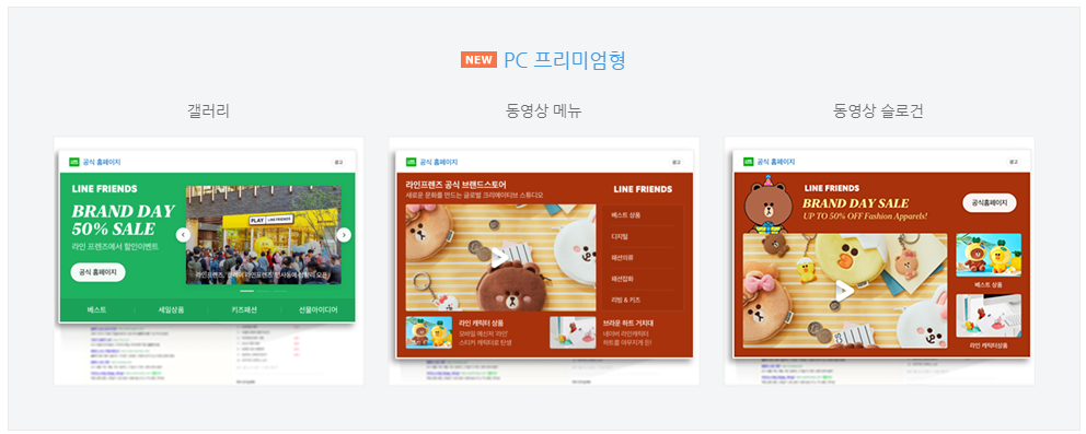 이미지, 텍스트, 동영상 등으로 구성되며 상품 유형에 따라서 구성요소는 차이가 있습니다. 모바일 라이트형, 모바일 프리미엄형과 pc 라이트형, pc 프리미엄형으로 구성되어 있어서 브랜드를 극대화 할 수 있는 형식을 선정해서 사용하면 됩니다. 가격에는 유형마다 차이가 있습니다.