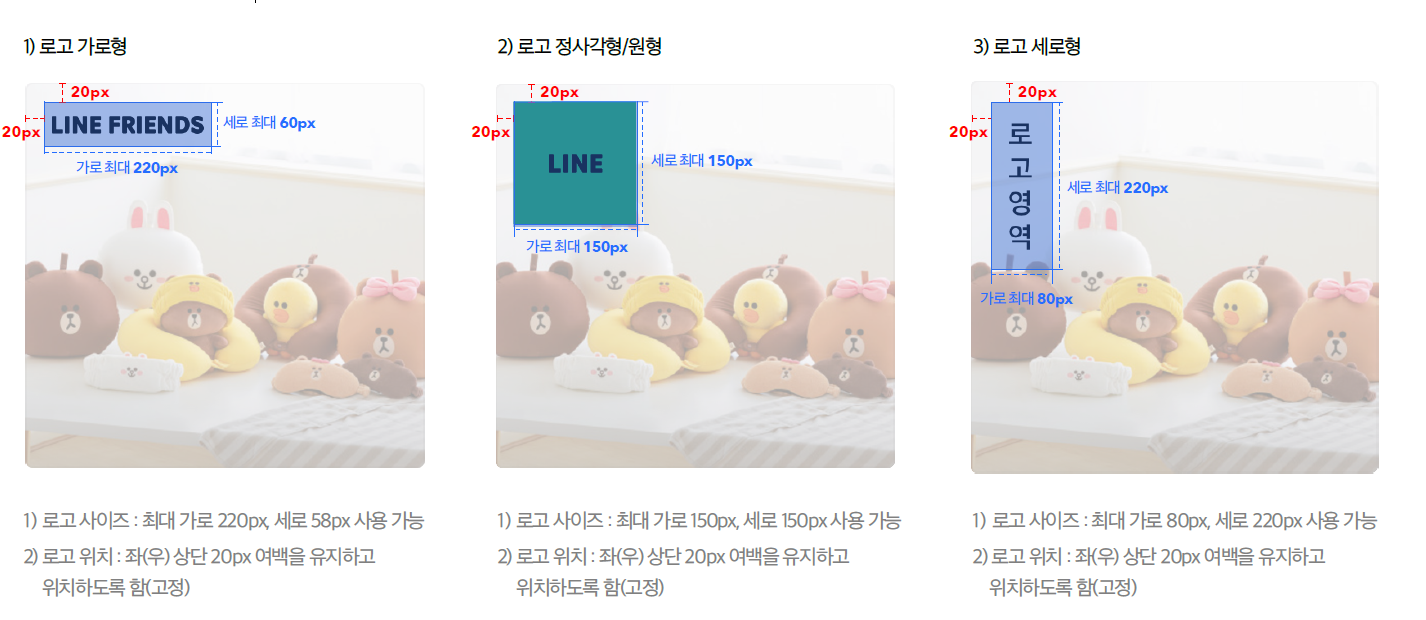 4) 로고는 여백이 없는 상태로 업로드 해야 하며 1:1~3:1(권장) 입니다.