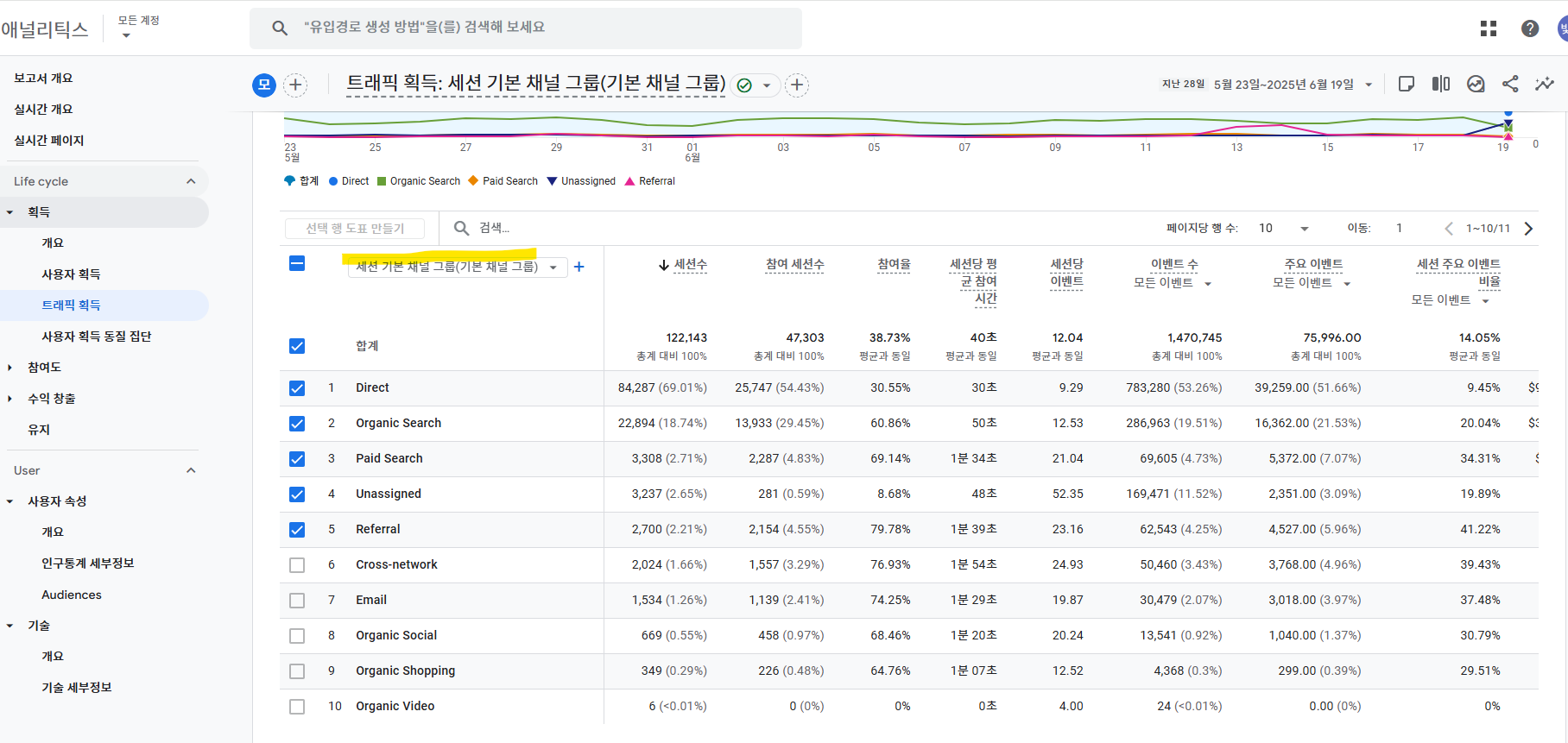 기본 채널 그룹 : 기본 채널 그룹은 구글이 알아서 잡아주는 그룹