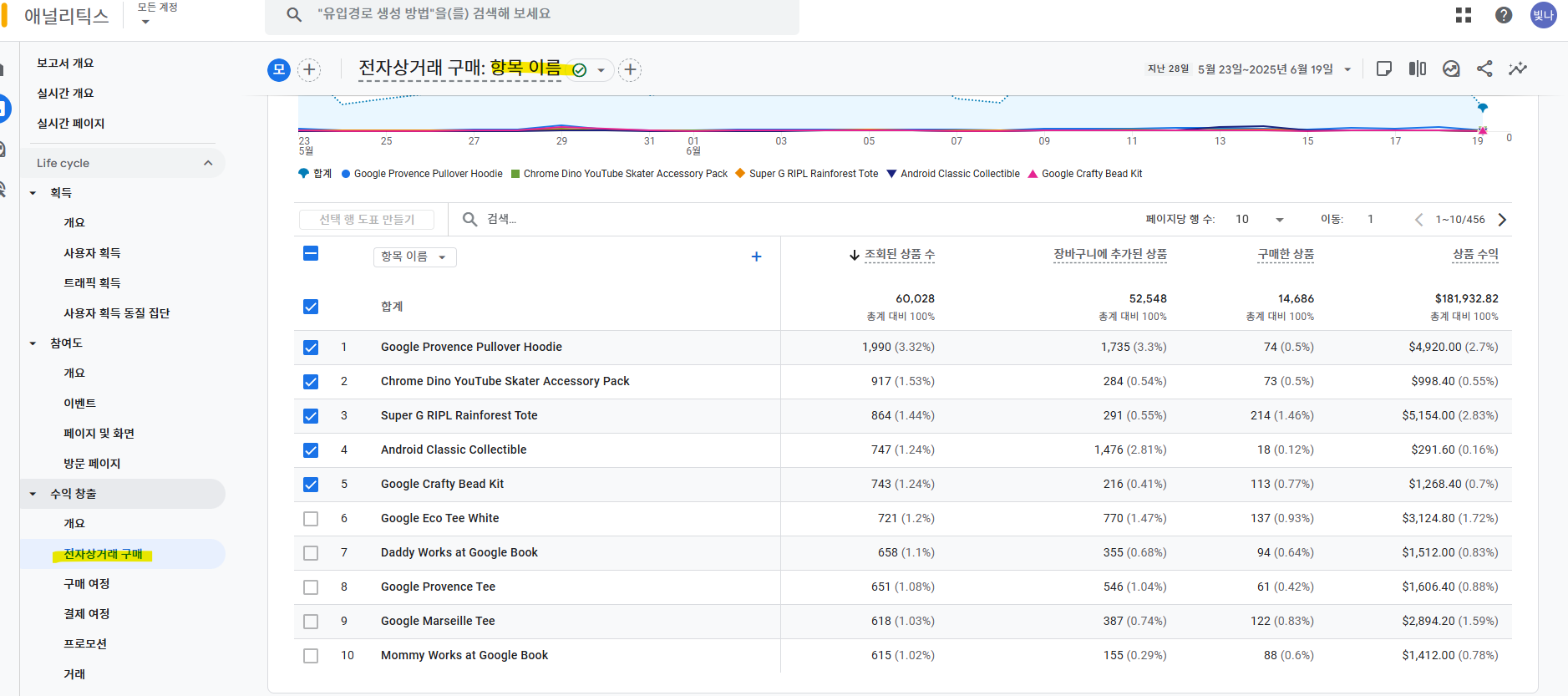 구글에서 제공해주는 기본 데이터들이 그룹화 되어 있고, 자주 사용하지 않는 탭