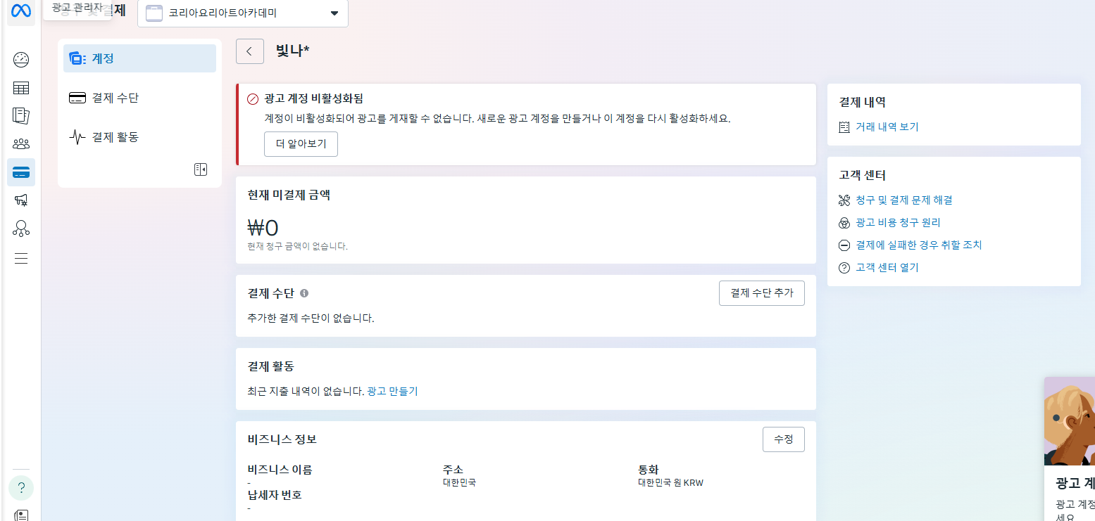 위의 과정을 하고나면 광고 집행을 위한 기본 계정만들기는 마무리 됩니다.