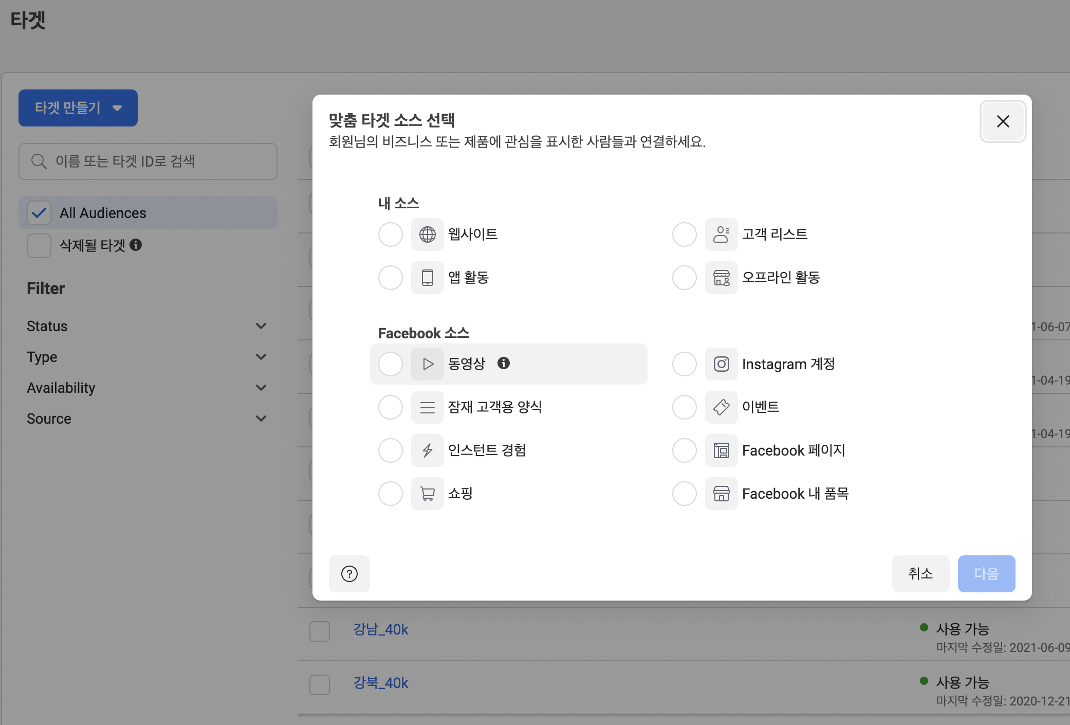 - 저장 타겟 : 광고를 집행했다가 따로 저장한 타깃입니다